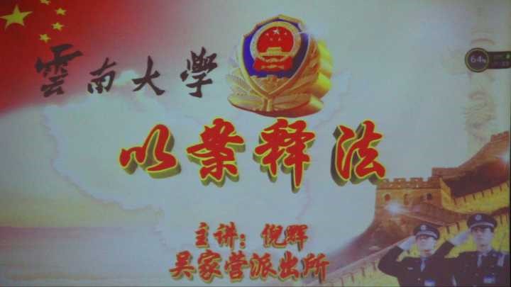 党课结束后,外院还请到了呈贡区吴家营街道派出所的倪辉警官为同学们进行《以案释法》的安全知识教育。他运用云大等的实际案例对员工进行了安全教育,强调了作为青年的我们应该铭记社会主义核心价值观并切实落实。