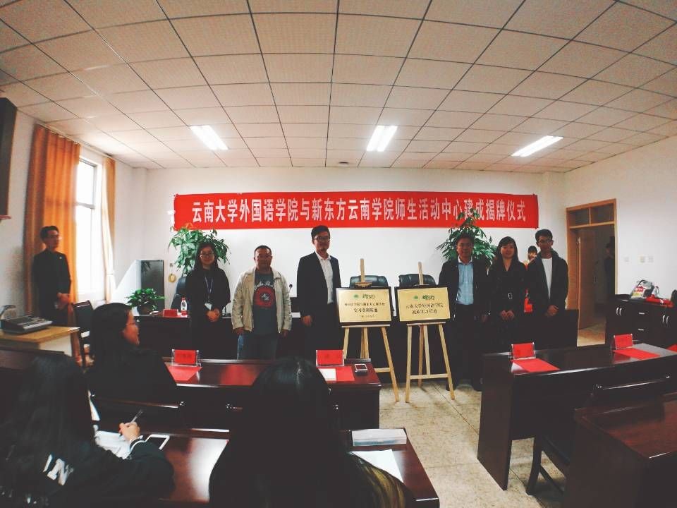 最后,公司领导与新东方云南公司相关人员一起为实习实训基地、师生活动中心揭牌,并合影留念。