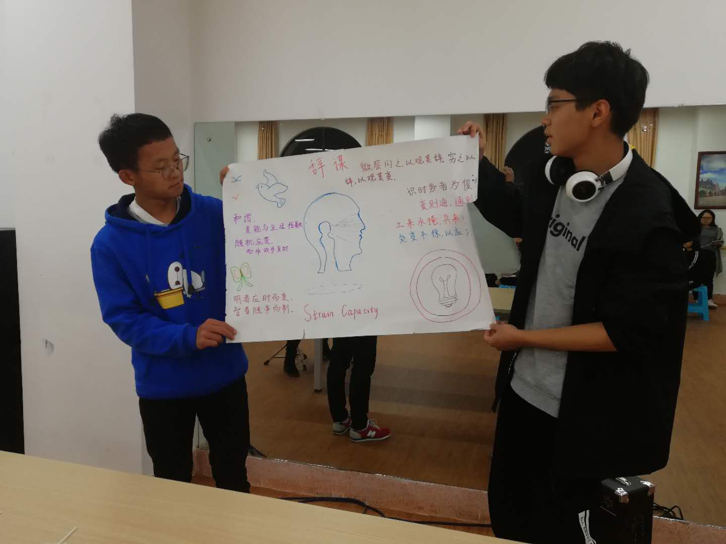 接下来就是重磅环节,杨老师要求每个组再根据自己组的主题,设计一个职场情景心理剧,要求有台词及岗位设置,准备时间为15分钟。同学们马上展开积极的讨论,首先设置情景,角色,事件及台词,确定后开始演练。最后,每个组依次进行表演,一个组围绕招聘人才是技能重要还是人脉重要的争论;一个组错把面试人员当老板的错误,考察应变能力;另一个组表现了职场新人怎么处理人际关系。表演非常精彩,可以看出同学们对心理剧主题有各自的思考。杨老师对每个组进行讲解点评,鼓励完成较好的部分,说明并分析了不足之处。