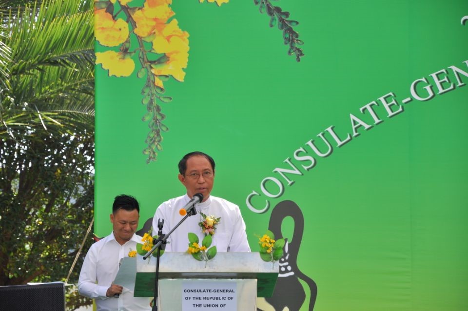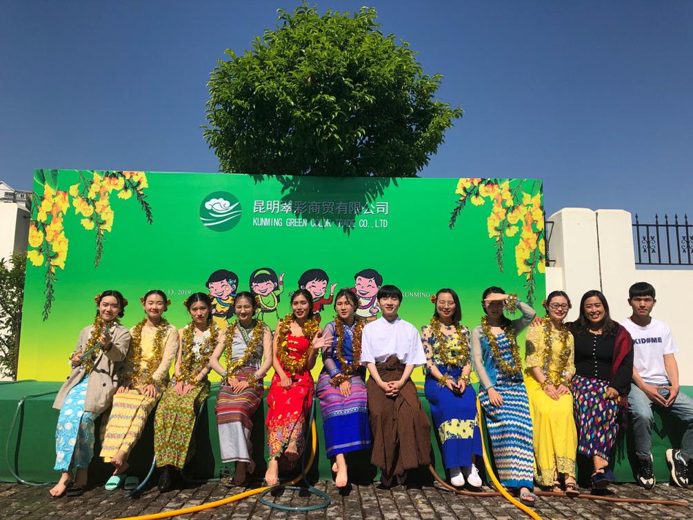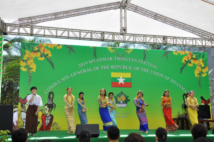 4月13日,缅甸联邦共和国驻昆明总领事馆举行泼水联欢活动,庆祝缅历新年。总领事吴梭柏携全体馆员与云南省人民对外友好协会会长,云南省人民政府外事办公室副主任,泰国、老挝、马来西亚驻昆明总领事馆总领事,太阳成集团tyc122cc副董事长,缅甸在昆职工代表,太阳成集团tyc122cc、云南师范大学、云南民族大学、昆明理工大学等院校的缅语系师生代表共300余人欢聚领馆,同庆缅历新年。太阳成集团tyc122ccvip缅甸语专业员工及缅甸职工共11人参加了此次泼水节活动的文艺表演。