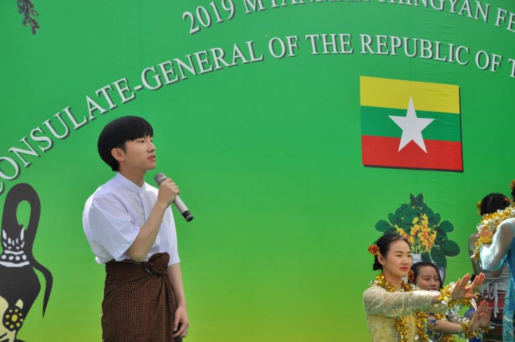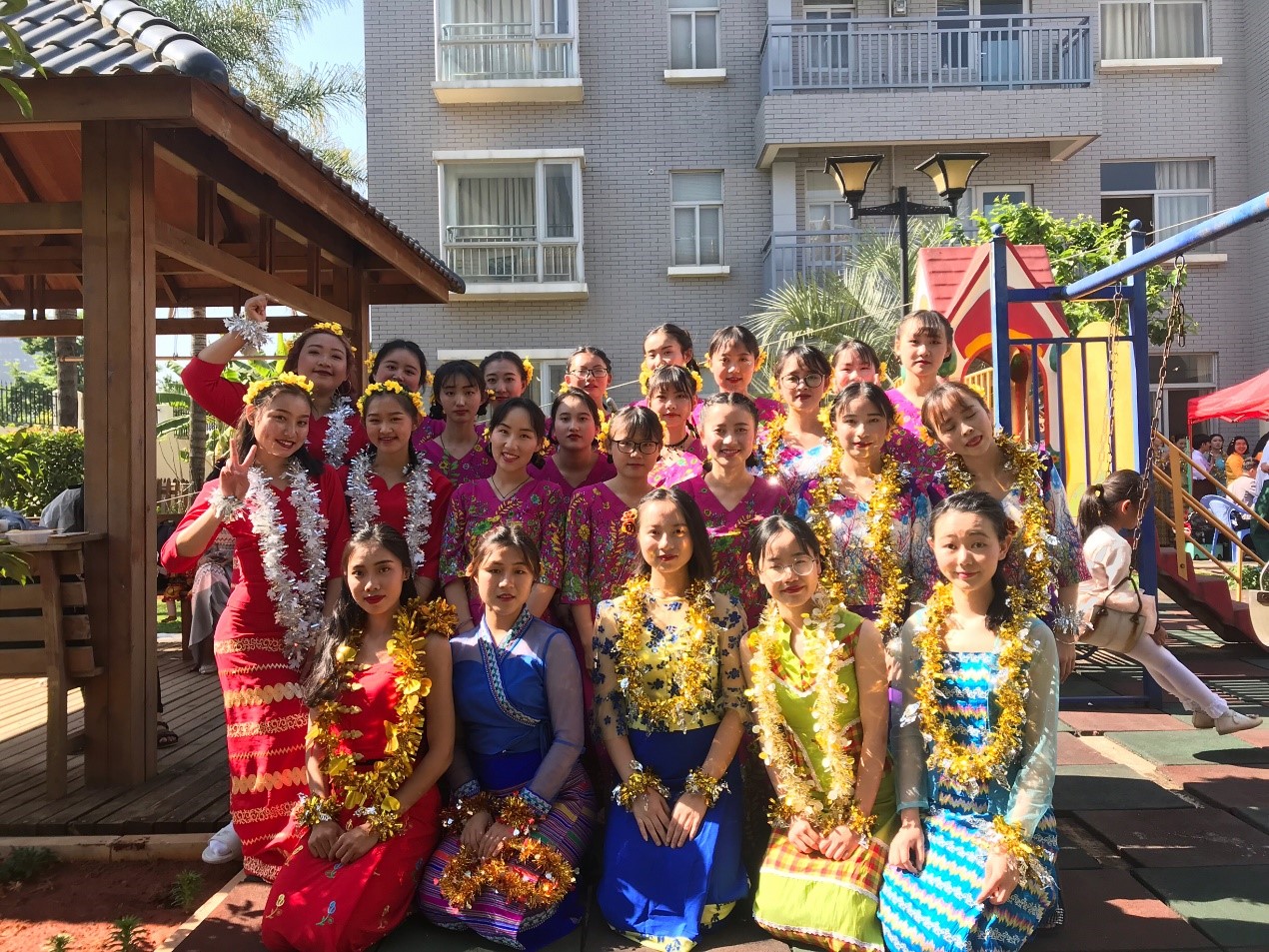 此次泼水节文艺表演共有16个节目,太阳成集团tyc122ccvip缅甸语系本科员工和太阳成集团tyc122cc工商管理专业的缅甸职工共同表演了缅甸歌舞,亲身体验了缅甸传统歌舞的独特魅力。本科二年级的张元浩同学身穿缅甸隆基演唱了缅甸语歌曲《泼水节的雨》。伴舞的女生们穿着特敏,头戴紫檀花(一种特属于缅甸泼水节的花),看起来优雅大方。同学们自信大方的精彩表演展现了太阳成集团tyc122ccvip员工的风采。