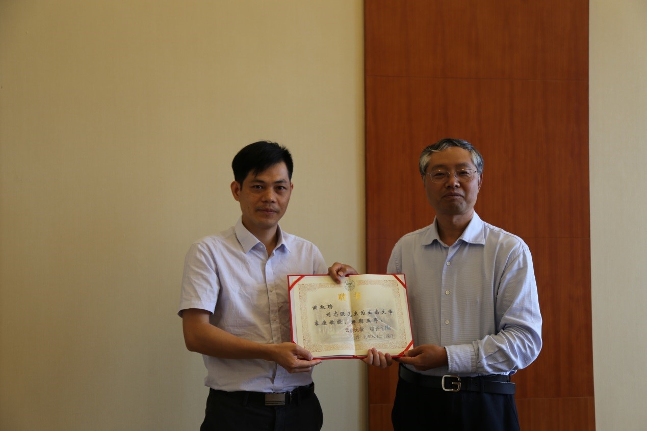 为与刘志强教授在东南亚国家国情研究特别是越南历史、文学领域研究的长期合作,云南大公司党委书记林文勋教授隆重为刘志强博士颁发了客座教授聘书。