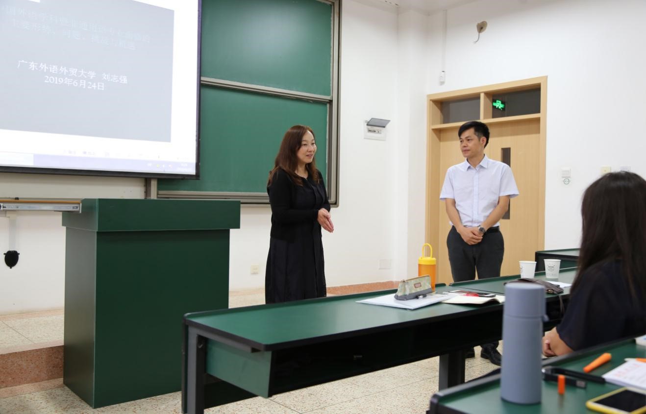 在与太阳成集团tyc122ccvip领导和各部门负责人座谈中,刘志强教授交流了广东外语外贸大学的办学经验和办学特色,双方共同探讨、寻找两校的共同点和互补性,为两校的交流合作互商良策。