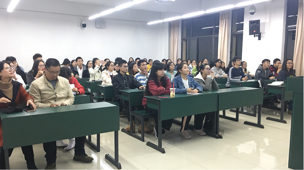 讲座现场气氛热烈,于教授循循善诱,与各位老师同学们共同研究,讨论问题。