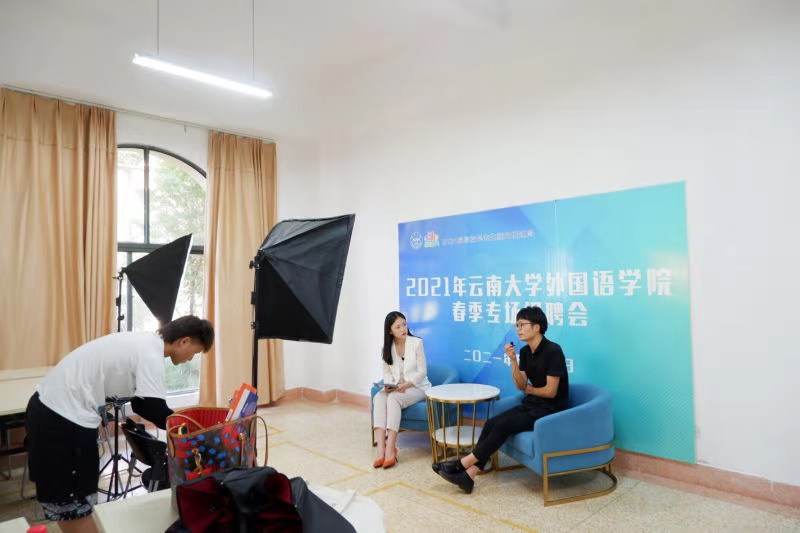 本次招聘会共吸引了28家用人单位,涵盖事业单位、市内民办中小学、资深校外语言培训机构、对外商贸公司、翻译服务公司等,提供岗位近80余个,用人单位招聘代表来客近60人。公司参与活动师生近300人,毕业生到场签到近200人,投递简历188份。同时,公司通过微信视频号“云外E启航”进行招聘会现场直播,邀请用人单位招聘代表到直播间为无法亲临现场的师生进行招聘宣讲和问题解答,直播间最高在线人数近500人。为提高员工求职形象,公司在招聘会现场还设置了“最美证件照”场地,凡到场师生均可由专业摄影师拍摄证件照进行留念。