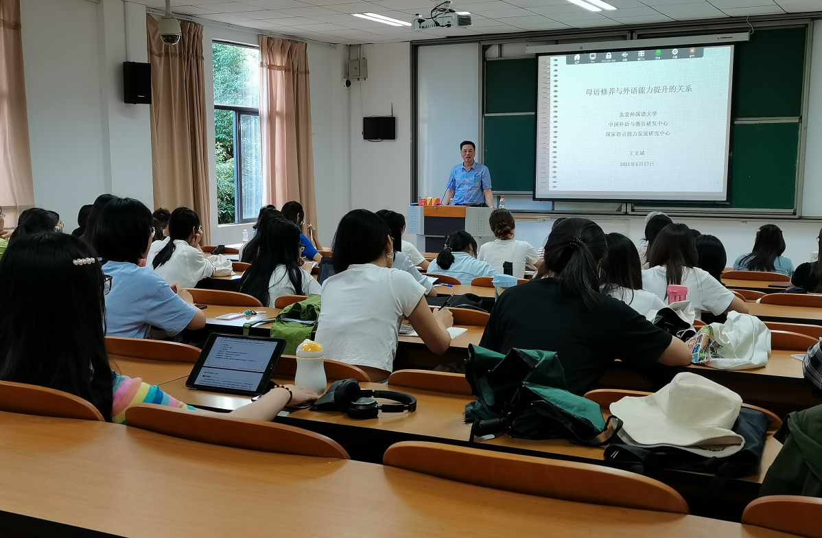 北京外国语大学博士生导师王文斌教授受公司邀请, 6月17日下午莅临公司讲学,举办了专场学术讲座。王文斌教授讲座的题目是《母语修养与外语能力提升的关系》。王教授认为,对于外国语言文学专业的员工而言,外语修养本质上是语言修养,而语言修养与母语修养紧密关联。学习外语,不能仅以外语为唯一目标,而是需要拓展视野,采取行之有效的方法掘深对母语的认知,提升元语言意识。古今中外,成功的外语学习者或研究者无不如此。母语修养水平最终将是外语水平的天花板,也是外语能力发展的关键。