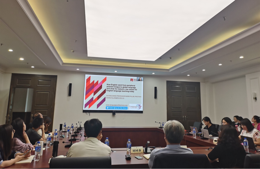 Piller教授是国际社会语言学核心期刊Multilingua及国际电子期刊Language on the Move主编,本次讲座她以《英语的近现代发展史》为题,以世界上目前现存的大约五千种语言为背景,梳理了500年来英语的起源与发展过程,尤其是英语如何从500年前被认为 “毫无价值”的农夫语言发展成为当今世界各国14亿人使用的通用语言,其中包括英国工业革命、英国17世纪以后在世界各地殖民,以及20世纪以来全球化对英语发展成为世界上通用语言所产生的影响。此外,她还探讨了英语的普及和流行对社会正义所产生的影响,例如对语言多样性的影响,使得少数族裔的语言面临存在的危机,以及美国英语和英国英语通常被认为是英语多样性中最佳的种类,母语为英语的人所使用的英语被视为最为规范的英语等涉及社会正义的认知问题。她还具体分析了英语教育在中国发展并导致英语不断普及的特征,包括英语作为小学、中学、高考和大学必修课程所产生的影响、中国英语的特征、英语所带来的与意识形态相关的问题等。 Piller教授的讲座内容放远全球,贴近现实,为从事英语教学的科研人员提供许多可借鉴的研究素材和话题,也为新时期我国的外语教育发展提供有意的参考和借鉴价值。