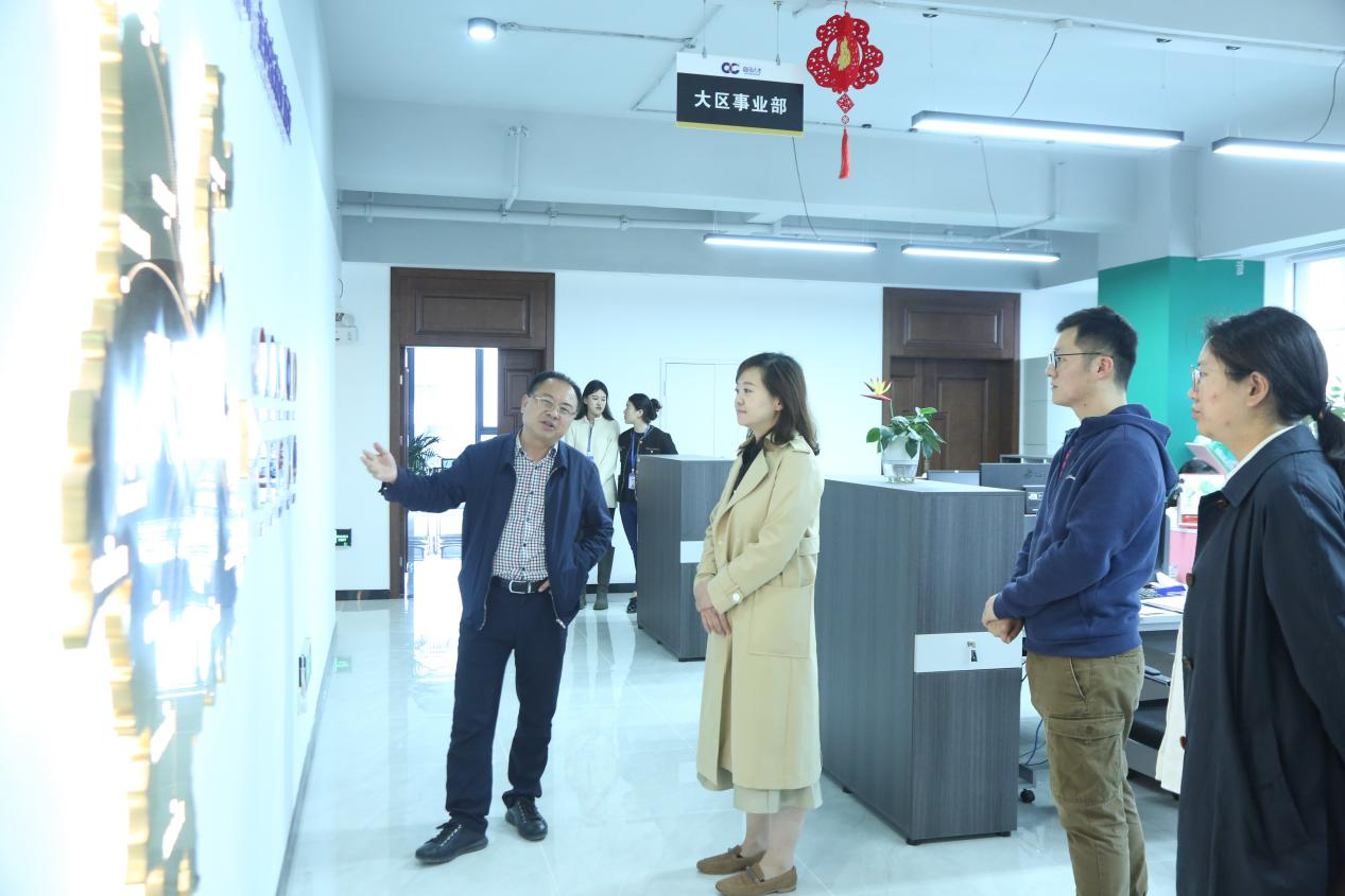 王飞董事长对公司何淼淼副书记一行的访问表示热烈欢迎,王飞董事长以企业文化讲解、企业宣传片展播等多种形式对公司基本情况进行了详细介绍,指出高创人才集团致力于对人才进行精准把握与匹配,以人才流推动资金流、信息流,真正实现高质量人才的良性融通与互动,切实服务地方经济发展。