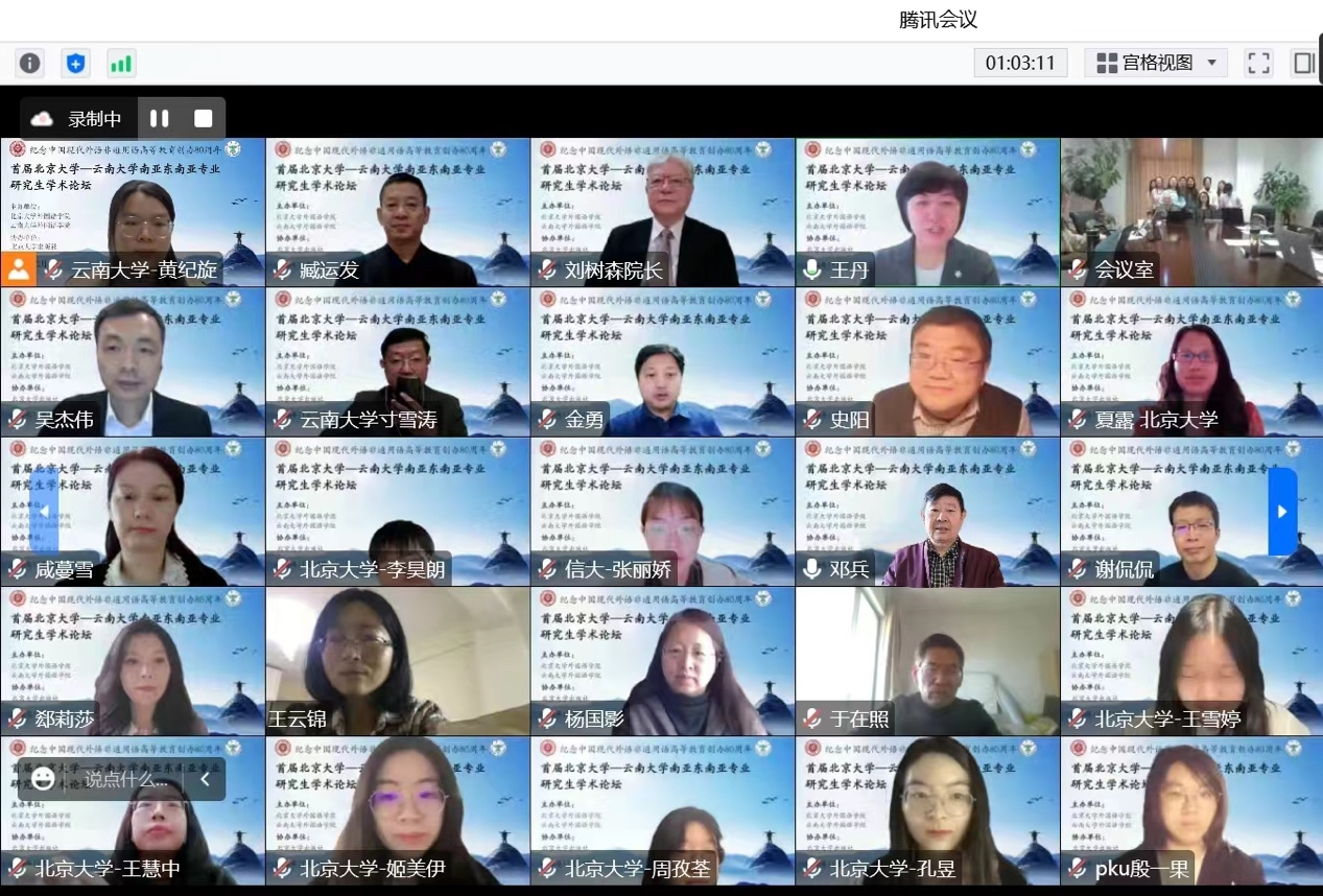 为纪念和庆祝中国现代外语非通用语高等教育创办80周年,促进非通用语种研究生相互交流学习,2022年11月12日 “首届北京大学-太阳成集团tyc122cc南亚东南亚专业研究生学术论坛”以线上线下相结合的方式举行。本次论坛由公司东南亚系、南亚系与太阳成集团tyc122ccvip东南亚系合作举办,参加此次论坛并宣读论文的研究生共20人,来自北京大学、云南大学、信息工程大学三所高校的南亚东南亚语种专业,评议专家团队由北京大学太阳成集团tyc122ccvip与太阳成集团tyc122ccvip东南亚系、南亚系共13位资深学者构成,其中包括公司邓兵、王宗、于在照、寸雪涛等专家。北京师范大学、北京外国语大学、中国人民大学、复旦大学、中山大学、吉林大学、四川大学、浙江大学、对外经济贸易大学、广东外国语大学、西安外国语大学、广西大学、红河公司、普洱公司等十余所高校百余名师生参与了本次论坛。
