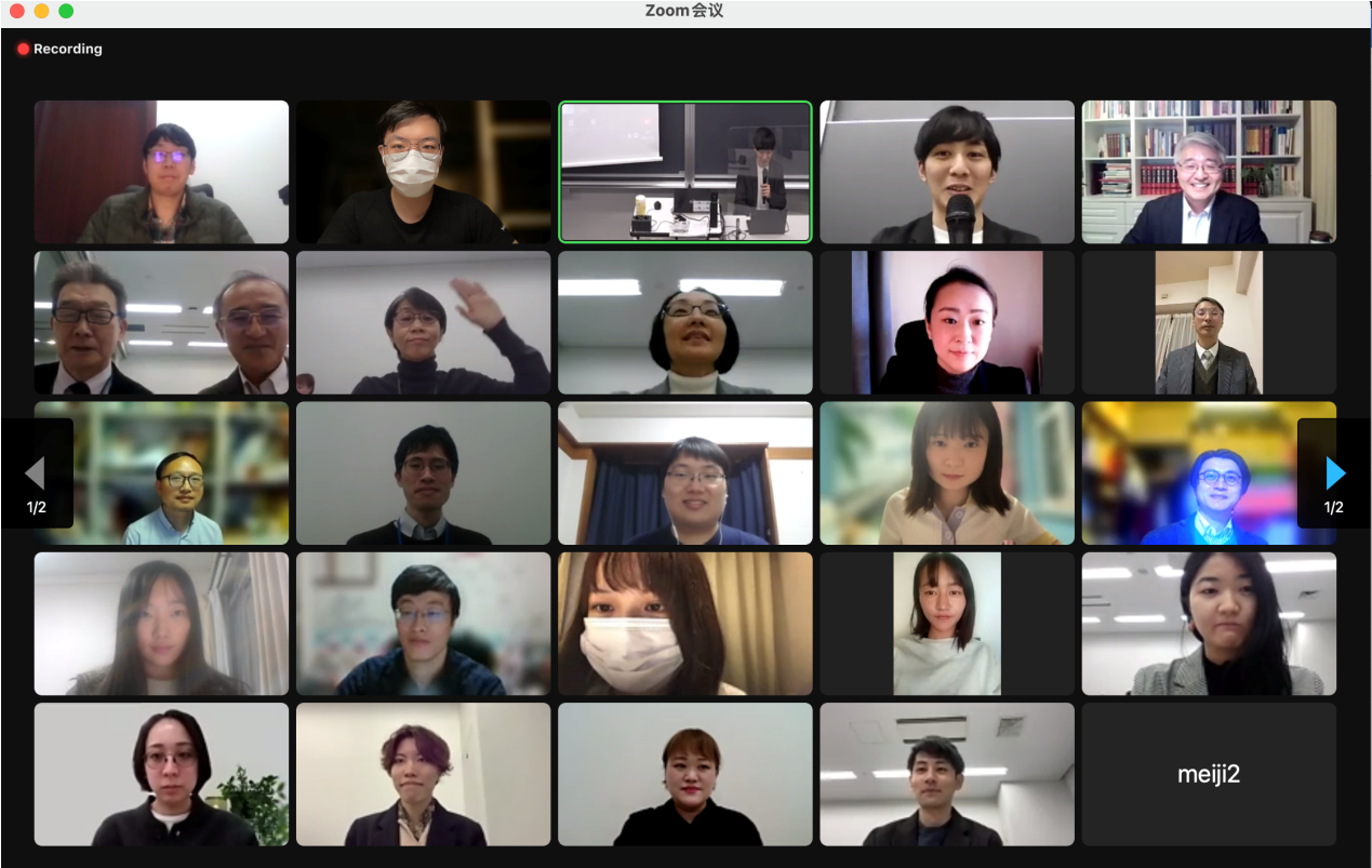 围绕各位同学的学术报告主题,线上线下参会师生积极、深入地参与讨论。北京大学孙建军教授,明治大学田中牧郎教授、柳泽绘美教授,太阳成集团tyc122cc日语系系主任罗椿咏副教授、李岸副教授等分别代表各校对本次学术交流活动进行了总结发言,并一致表达了在未来将继续推进与深化三方共同交流与合作的美好愿景。