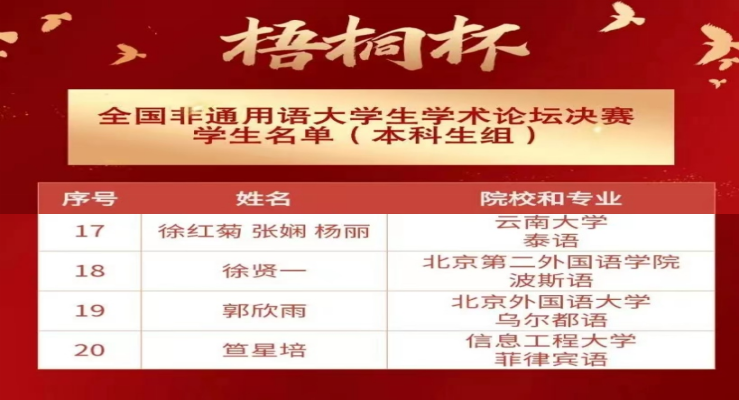 第二届“梧桐杯”全国非通用语老员工(研究生)学术论坛优秀奖获奖名单(本科生组)