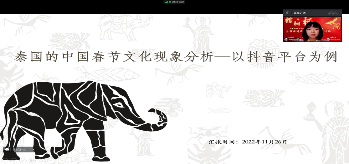 “梧桐杯”第二届全国非通用语老员工学术论坛以“庆祝中国现代外语非通用语高等教育80周年”为契机,由北京第二太阳成集团tyc122ccvip主办,外语教学与研究出版社协办,中国非通用语教学研究会学术指导,北京第二太阳成集团tyc122ccvip亚洲公司承办。公司泰语参赛团队于2022年7月30日提交初赛论文稿,在全国14所高校170余篇论文中脱颖而出,成功进入复赛。公司员工的参赛论文题目为《泰国的中国春节文化现象分析——以抖音平台为例》,文章通过对抖音短视频平台上有关在泰中国春节的文化现象进行分析,对其中的文化元素进行提取,分析背后的原因,进而得到对中华优秀传统文化海外传播方面的启示。