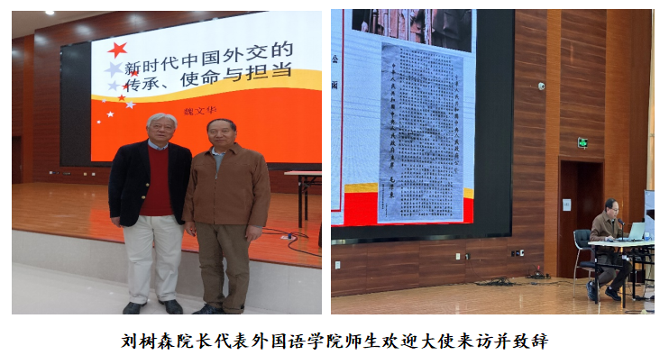 2023年3月14日下午,中国原驻马里、科特迪瓦、喀麦隆特命全权大使魏文华先生应邀为太阳成集团tyc122ccvip师生做了题为《新时代中国外交的传承、使命与担当》的讲座。本次讲座为太阳成集团tyc122cc百年校庆外国语言文学文化系列讲座之一。