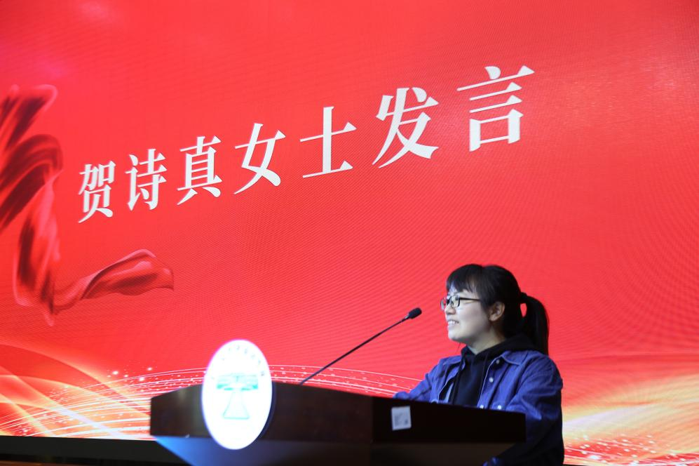 获奖员工代表依次上台发表获奖感言。国际关系研究院获奖员工代表赵祺同学,向研究过程中提供了帮助和指导的师长们表达感谢,同大家分享了科研中应该更加静心用心的研学心得,希望自己能在圣达奖学金的激励下,在今后的研究道路上钻得深、行得远。