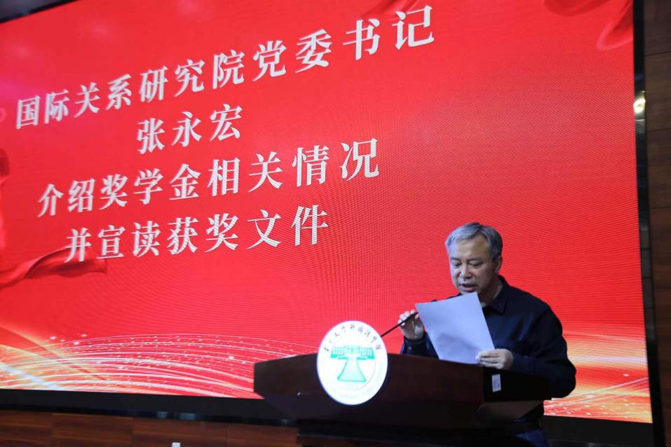 国际关系研究公司党委书记张永宏老师进一步介绍了“圣达奖学金”相关情况,增进与会师生对该奖学金的了解,随后宣读获奖名单。
