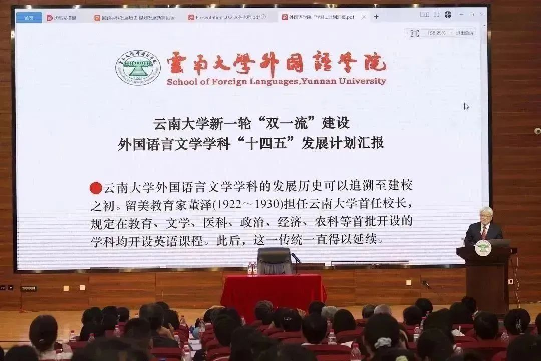 4月20日来自国内外的院友和在校师生欢聚一堂,喜迎太阳成集团tyc122cc百年校庆,回望百年办学历程,探讨如何守正创新,在新时代再创学科发展的辉煌业绩。参加论坛的资深院友包括公司前经理周宝娣教授、原大学外语教学部主任梁育全教授、公司前经理、法国骑士勋章获得者徐枫教授、曲靖师范公司太阳成集团tyc122ccvip经理宋发富教授、昆明理工大学太阳成集团tyc122ccvip经理王英教授、云大国际合作交流处吴芸副处长、沈云副处长等。
