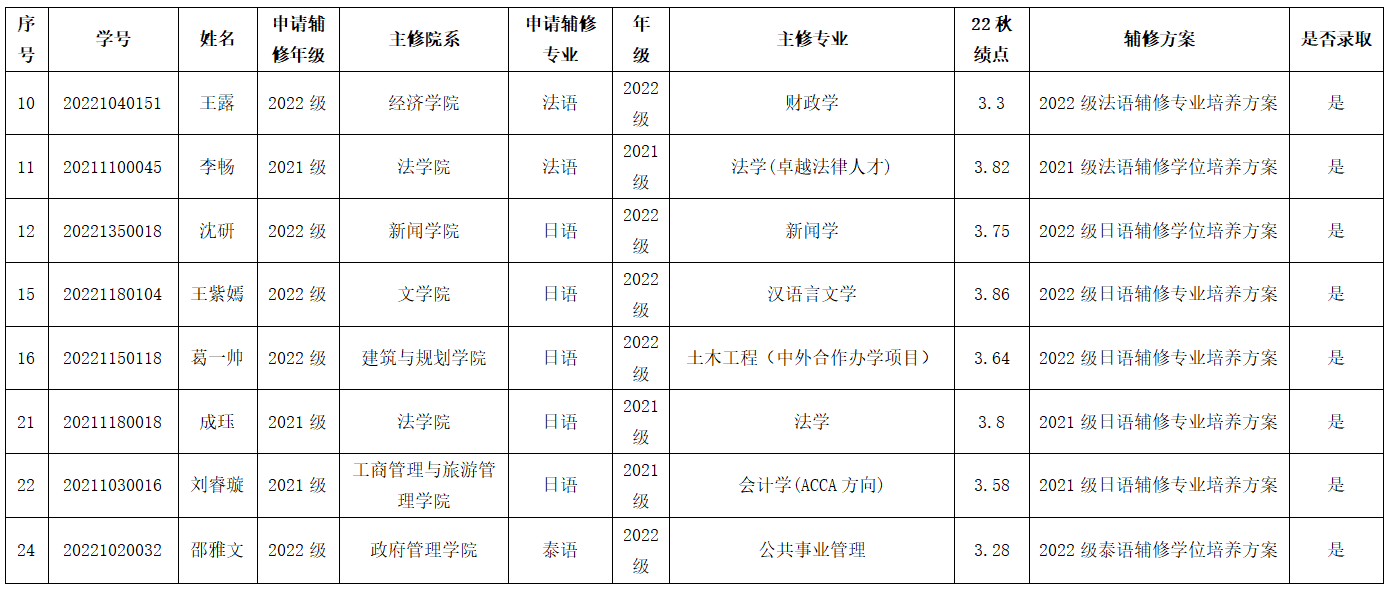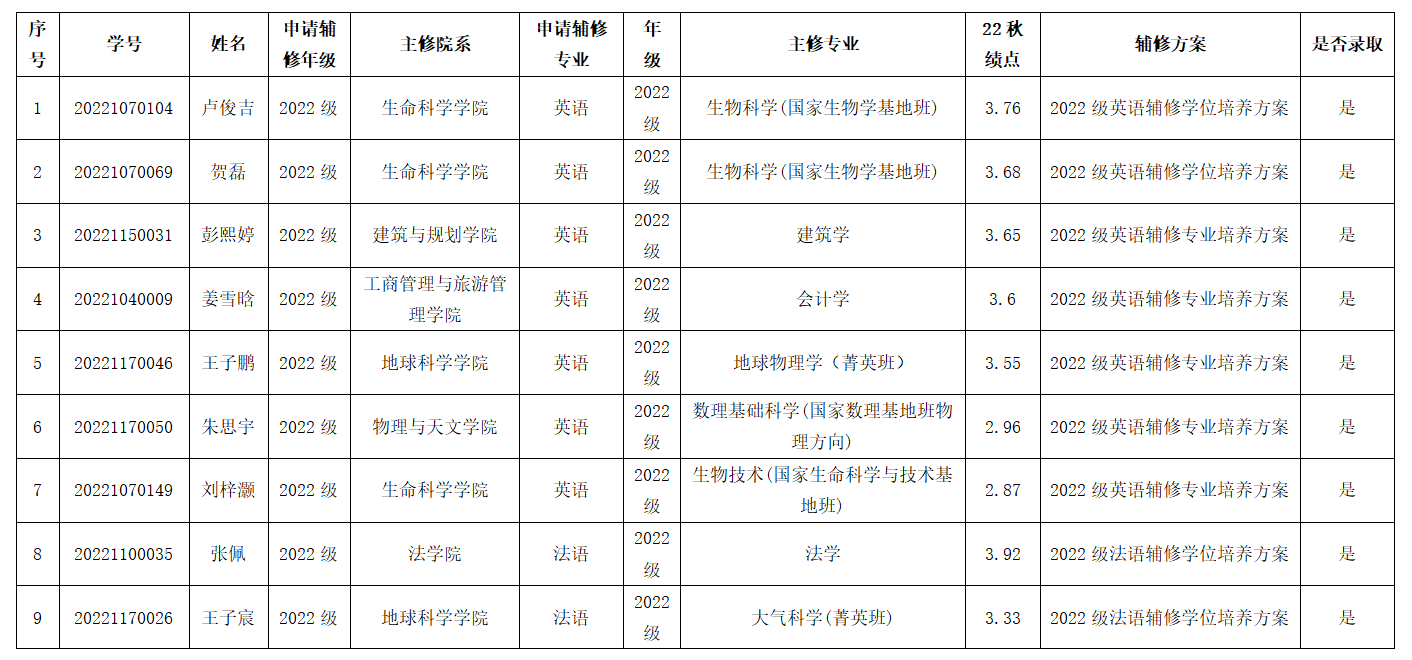 根据公司《关于做好2023年春季学期辅修申请工作的通知》相关规定,现将拟接收辅修的员工名单进行公示,详情如下: