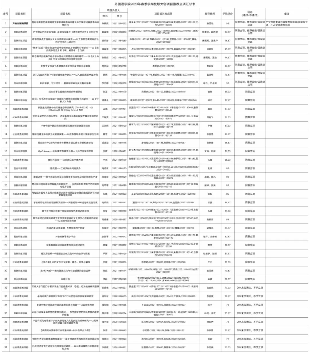 此次项目立项工作,共带动全校多个专业的80名同学参与,充分体现了新文科背景下跨专业、跨学科的相互合作与创新的特色。在校内外49名指导教师的共同努力下,公司此次共有40个项目申报立项,实际参加立项答辩项目39项,公司准许立项数量31项。其中产业创新类项目1个,创新训练类项目12个,创业训练类项目7个,社会调查类项目11个。拟推荐省级、国家级立项项目8个(包括产业创新类项目,产业创新类项目,不占用指导教师、员工其他各类大创项目的限项名额),拟淘汰项目8个。