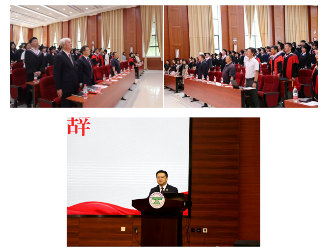 在全体与会师生庄严地奏唱国歌之后,毕业典礼正式开始。太阳成集团tyc122ccvip党委书记王益广致辞,对圆满完成学业、即将踏上人生新征程的2023届全体毕业生们表示最热烈的祝贺和最深切的祝福;同时也向悉心指导的老师、辛勤培育同学们的家人和一路支持的亲友致以诚挚的敬意和衷心的感谢。王书记在致辞中提到,每个时代都有每个时代的记忆。以“百年校庆”“新冠疫情”为关键词,回顾了大学四年时光,送上对同学们的期望和嘱托,希望同学们:敢担当,用青春守护家园;知敬畏,用青春回馈社会;勤奋斗,用青春铸就幸福,奋进新时代,建功新时代,为中华民族走向世界舞台的中央,书写美好的人生篇章!