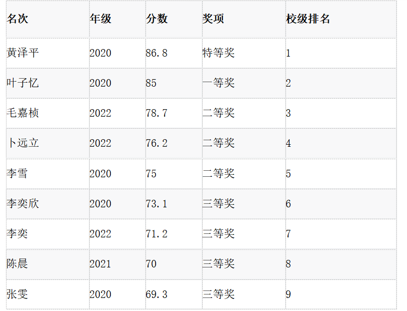 校赛获奖名单如下: