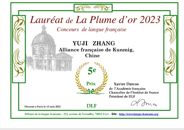 在 “2023金羽毛”全球法语大赛中,公司法语系2022届本科毕业生张瑜霁作为昆明法语联盟的选手,获得了全球第五名的佳绩!