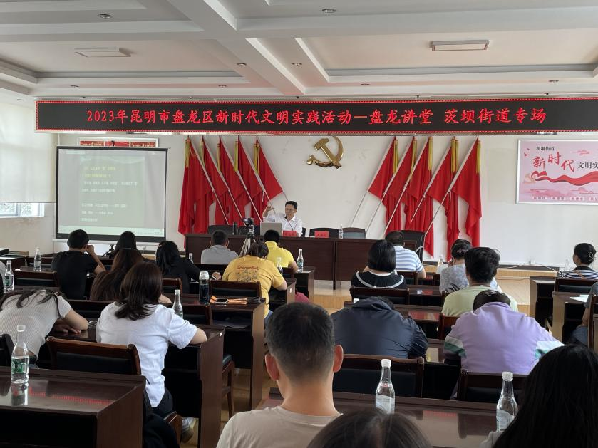 2023年7月13日下午,公司大学外语教学部刘志成副教授受邀赴盘龙区茨坝街道社区开展了“汉语与《黄帝内经》及中医保健理念”的科普讲座。该讲座为盘龙区新时代文明实践活动——盘龙讲堂的活动内容之一,亦是公司坚持和提倡公司教师“教学、科研、社会服务”三合一及党员走进社区、科研反哺社会的成果之一。