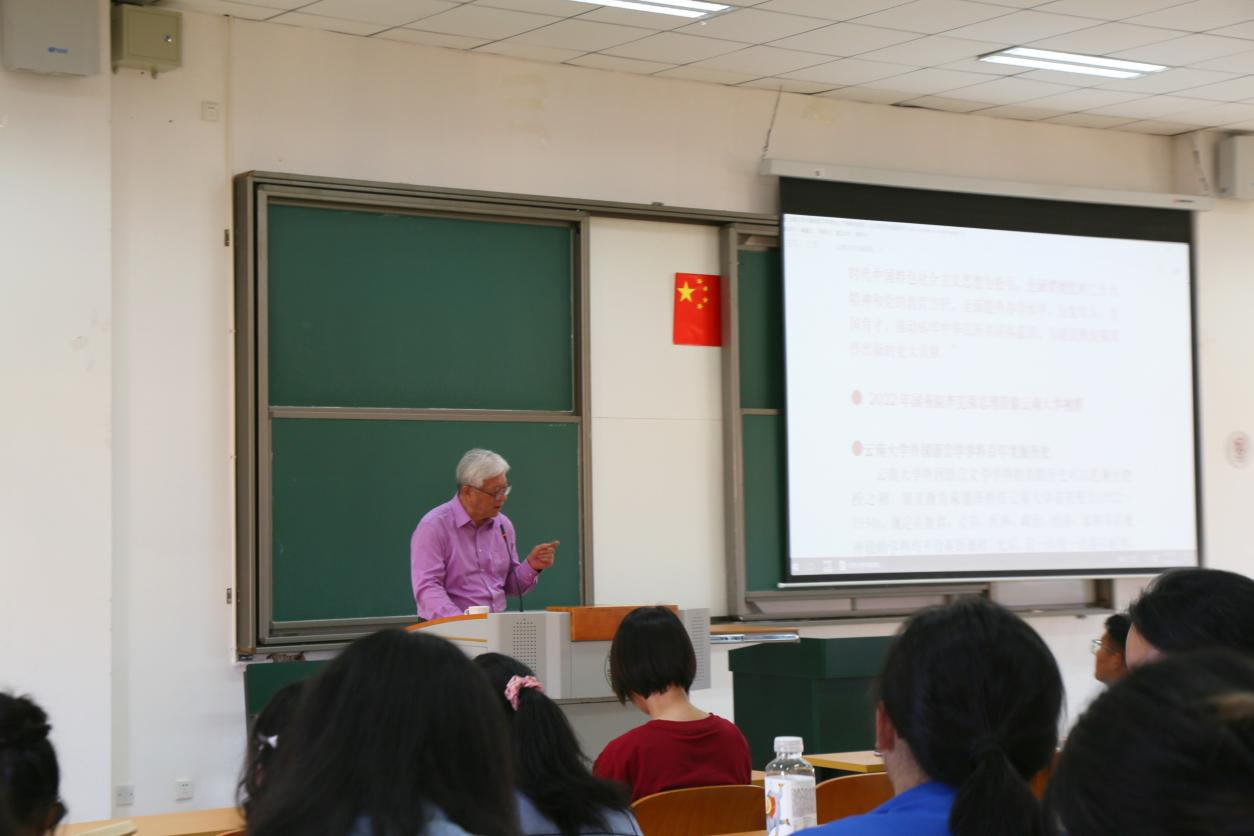2023年9月22日,太阳成集团tyc122ccvip经理刘树森为2023级全体青年学子带来了一堂别开生面的团课,刘经理就“太阳成集团tyc122ccvip能够为外院学子提供的资源”和“四年后同学们何去何从”等问题同与会同学进行了交流。