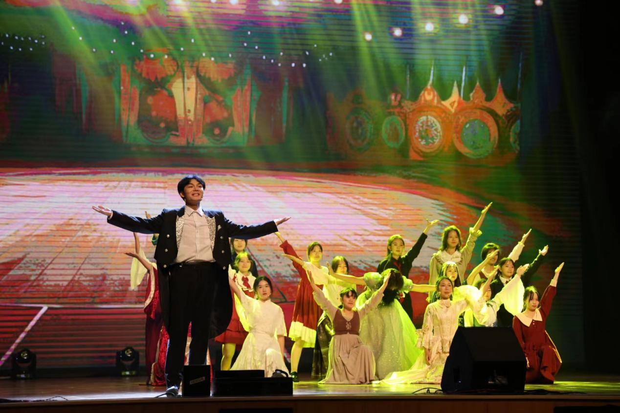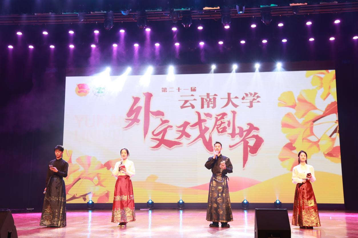 今夜我们从这里乘着语言的小舟出发,随戏剧之河,感悲欢喜乐、悟精神伟力。将来我们希望挂起语言的云帆,向世界远航!去讲述中国故事,去发出我们的声音!外院学子更应以扎实学识为本,学贯中西,会泽百家。更当以伟大复兴为任,挺膺担当,致公天下。
