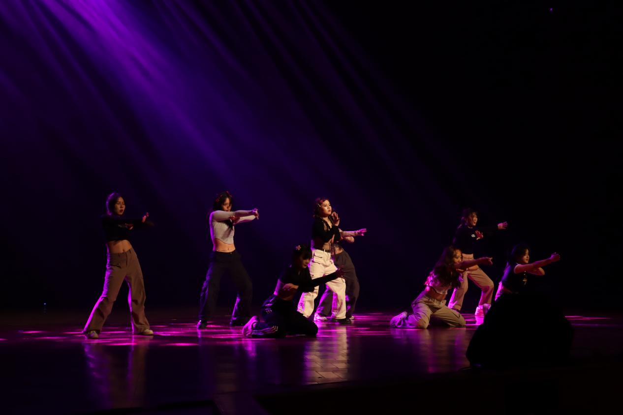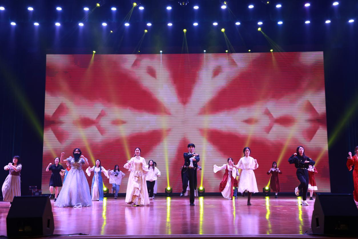 开场舞Swag Me Out:灯影交错,同学们活泼魅力的舞姿呈现;汗水挥洒,律动的鼓点和悦动的活力燃爆全场。同学们展现的青春朝气点亮了会堂,带领我们步入这狂欢盛宴。
