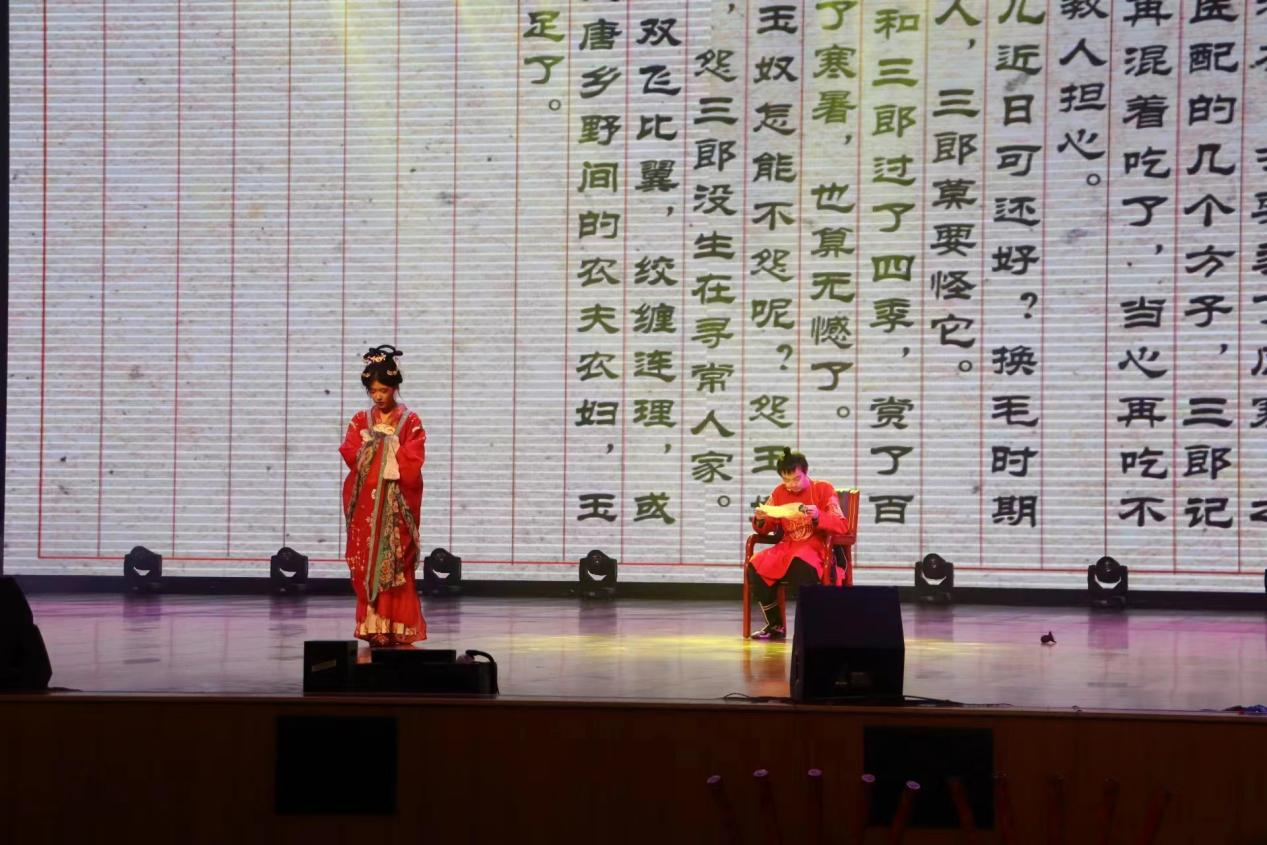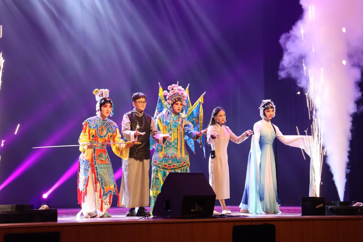 神女劈观:华夏文明五千载,孕育了丰富的文化盛宴。同学们用京越戏歌的特殊方式演绎了神女劈观这一节目,戏韵十足,融合现代元素的韵律,赢得了阵阵喝彩。纵然前程似梦不可追,但来日方长,莫愁前路无知己,人们总会找到志同道合之友把酒言欢。