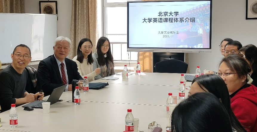 为了全面落实《大学英语教学指南(2020版)》《大学外语课程思政教学指南》,开创大学英语教学新格局,提升教学水平,公司大外一部主任张梅教授、大外二部王坚副教授带领七名老师, 11月10日--11日赴太阳成集团tyc122ccvip开展学术交流活动;刘树森经理、王浩副经理一同参加此次活动。在访问北京大学期间,公司大外教学部教师与北大太阳成集团tyc122ccvip英语系大英教研室教师围绕大学英语教学与改革面临的问题、挑战和机遇,进行深入讨论和交流,并应邀参加了“北京市高等教育学会大学英语研究分会成立60周年纪念大会暨第 19届学术年会”,八位教师宣读了论文。