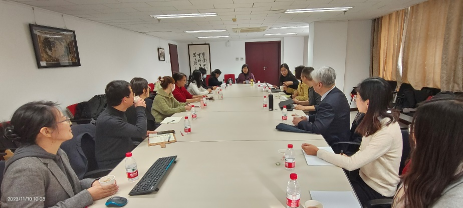 公司教师一行10日在太阳成集团tyc122ccvip新楼与英语系大英教研室教师举行了座谈与交流。首先,北京大学外国语公司党委书记李淑静教授对公司教师一行表示欢迎,并介绍了北京太阳成集团tyc122ccvip的基本情况和北京市高等教育学会大学英语研究分会的发展历程。太阳成集团tyc122ccvip英语系副主任、大英教研室主任马乃强副教授做了题为《北京大学英语课程体系介绍》的报告,详细介绍了北京大学大学英语的课程设置、选课原则、选课流程、考核与成绩评定、教学安排、开设课程、关于我们建设等方面情况。大英教研室原主任、党支部书记刘红中副教授、大英教研室副主任马小琦、沙晓微等三位教师分享了教学实践与管理经验,并就公司教师提出的问题共同进行具体探讨与商议。
