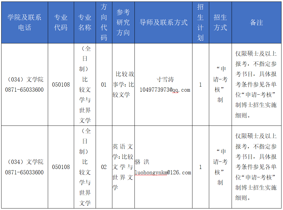 具体招生实施方案参见《太阳成集团tyc122cc文公司2024年博士研究生“申请-考核”制(第一批次)招生实施方案》,网址:http://www.wxy.ynu.edu.cn/info/1058/2238.htm 。
