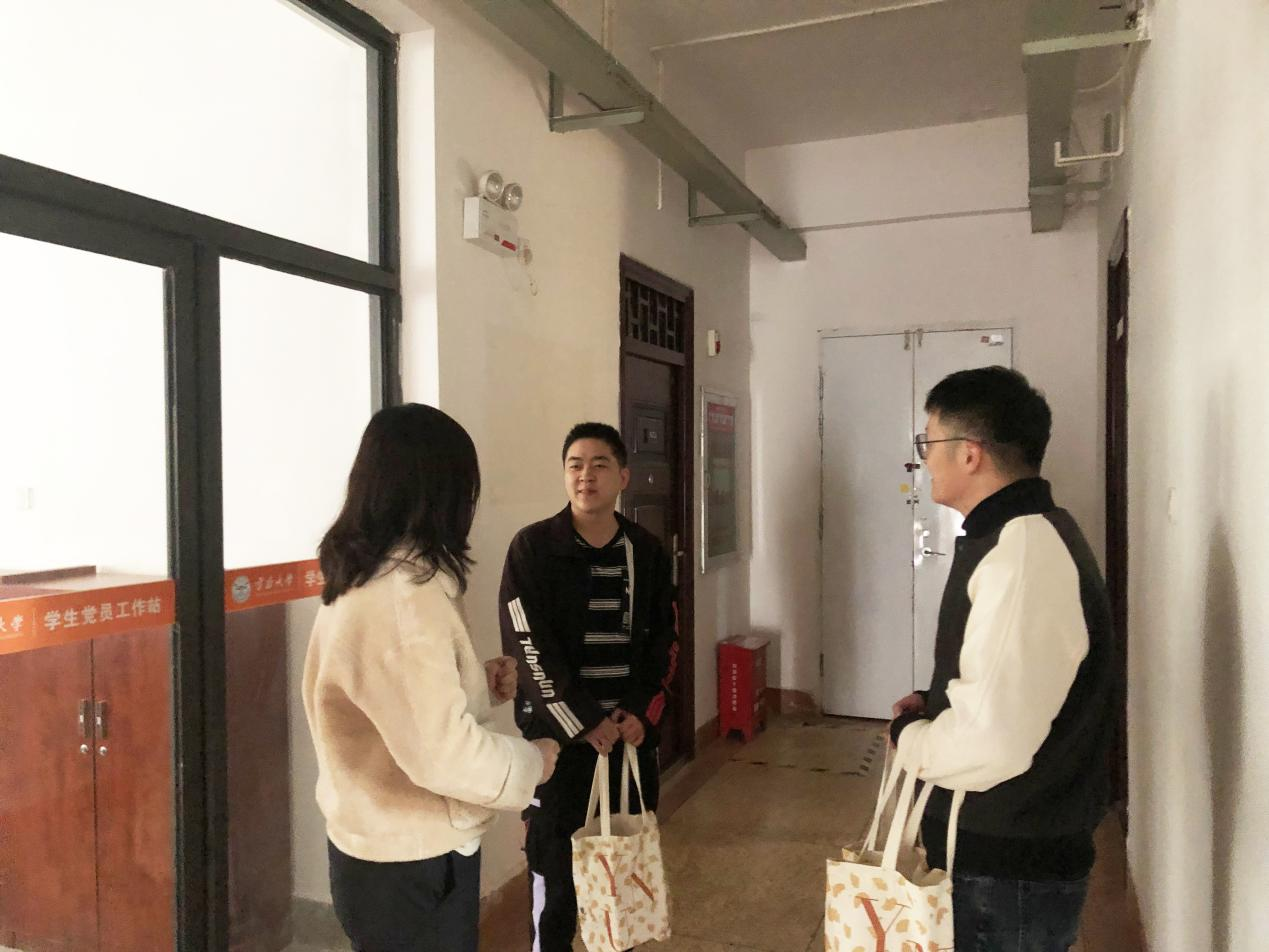 在寒冷的冬日里,何副书记代表公司党政领导班子,带着满满的关爱,深入走访了考研同学的宿舍。详细询问同学们的学习生活情况,鼓励他们要坚定信心,保持积极乐观的态度,克服困难,坚持到底。同时,为同学们送上了精心准备的慰问品,包括“有球必应”郁金香花盒、小潒布袋、文具袋、咖啡券、鲜花饼等,希望这些小小的心意能为同学们的备考之路增添一份温暖。