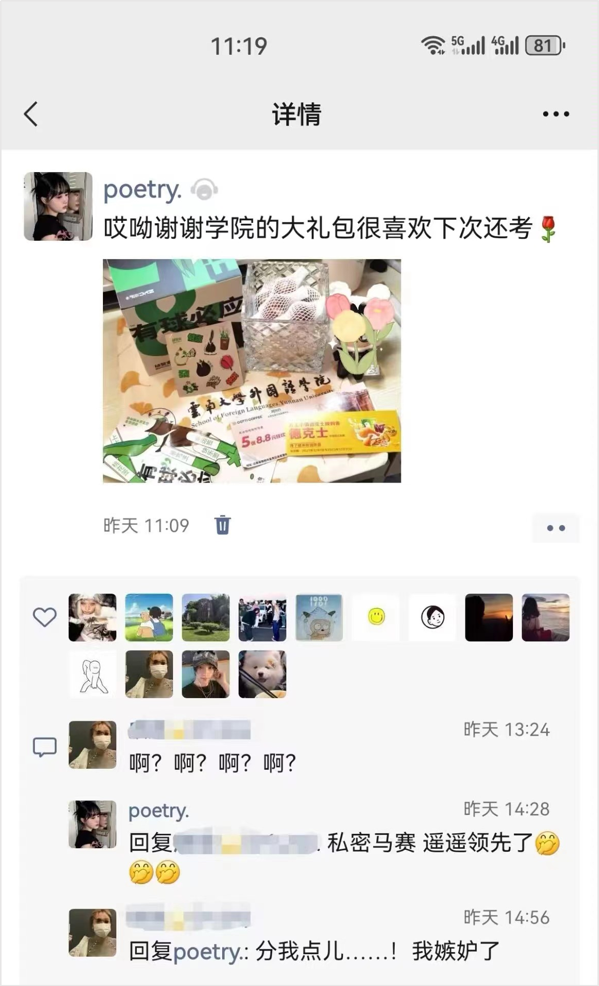 同学们纷纷在朋友圈晒出了收到的慰问品,表达了对公司领导和老师们的感激之情。让我们一起跟随同学们的镜头去饱饱眼福吧!