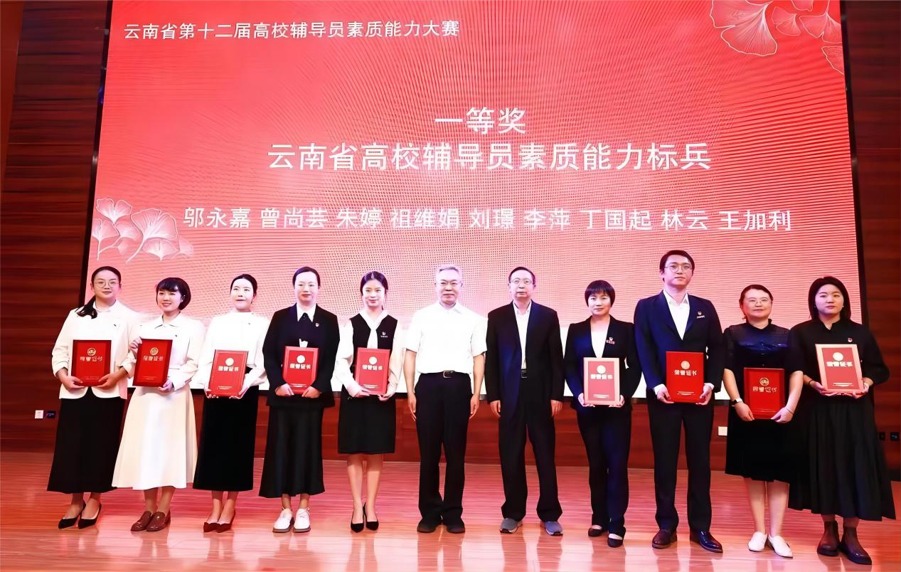 其中,公司辅导员邬永嘉老师在比赛中斩获一等奖,并被授予“云南省高校辅导员素质能力标兵”称号。
