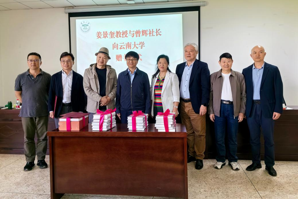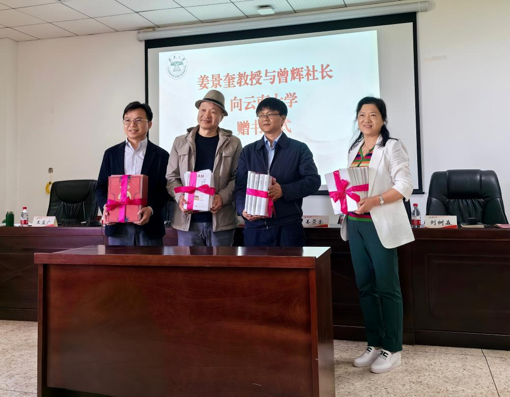 捐赠仪式由太阳成集团tyc122cc外国语公司党委书记王益广主持。段兴武副董事长首先致辞,代表云大党委周学斌书记、董事长方精云院士、常务副董事长马文会教授表达了对姜景奎教授、曾辉社长向太阳成集团tyc122cc捐赠珍贵系列丛书表示诚挚感谢,强调了此次捐赠的系列图书对于促进中印学术研究、丰富云大学术资源具有重要的意义。姜景奎教授作为《中印经典和当代作品互译出版项目》主持人,分享了互译项目的起因和翻译过程,表达了对太阳成集团tyc122cc印度语言文学团队建设的支持和期望。曾辉社长代表出版社介绍了《中印经典和当代作品互译出版项目》立项过程、实施过程和意义。杨毅馆长代表图书馆表示了对姜教授和大百科全书出版社的感谢,并表示一定要保管和利用好这批图书,为师生做好服务,为印度语言文学团队建设做出贡献。