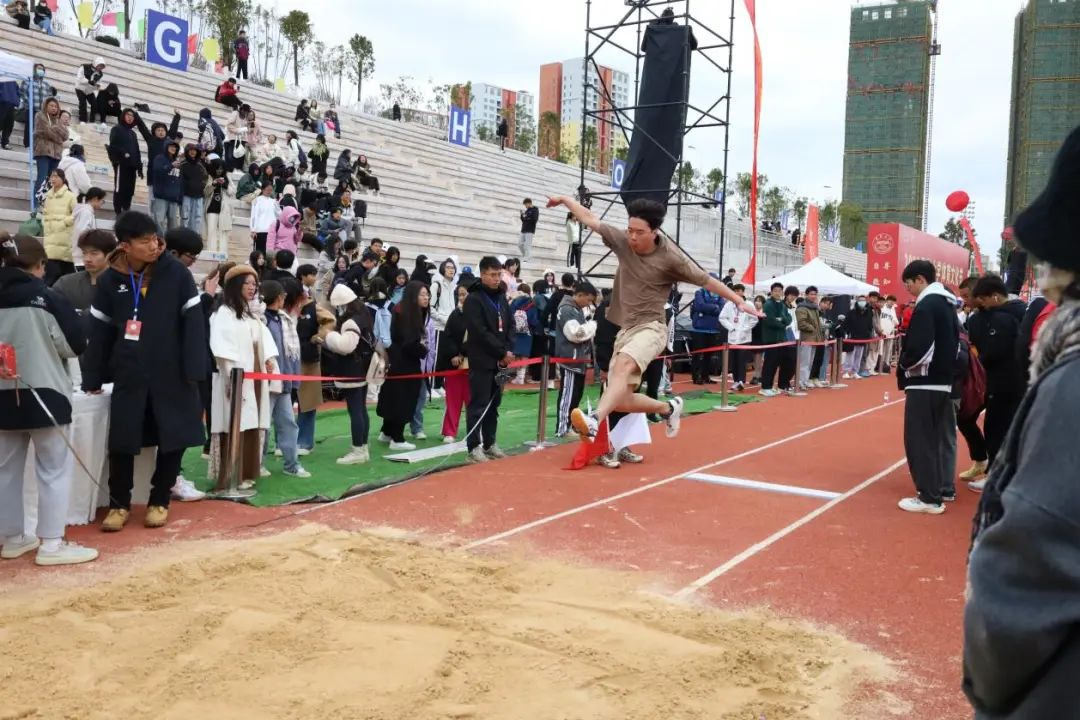 跳远赛场,运动健儿英姿映晴空