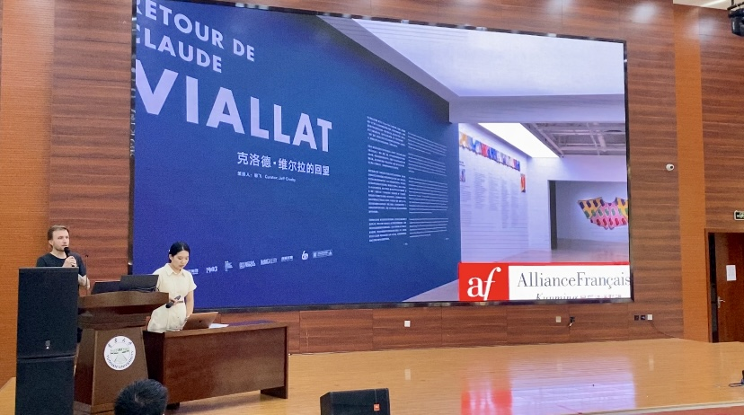 讲座主要围绕法国现代抽象艺术家克洛德·维尔拉(Claude Viallat)的艺术作品展开,并在此基础上介绍了推动其艺术风格形成的其他艺术家,如安迪·沃霍尔(Andy Warhol),海伦·弗兰肯塔勒(Helen Frankenthaler)等。作为“载体/表面”艺术运动创始人及代表人物,克洛德·维尔拉对法国当代艺术界创新和发展影响深远。通过对其近三十年创作方式和风格的展现和阐释,并结合见证者回忆录与文献材料,梳理艺术家创作轨迹,奥黑亮带领同学们在画布艺术中领略法国抽象艺术大师的魅力,加深师生们对法国文化及艺术发展的了解和认识,促进中法文化交流互鉴。