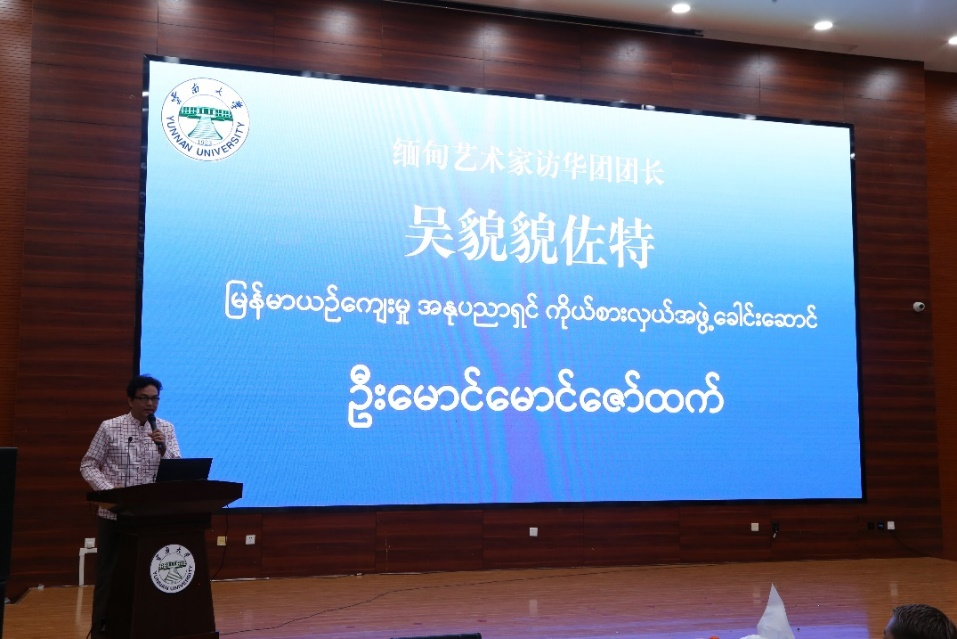 太阳成集团tyc122ccvip缅甸语教研室的寸雪涛教授发表了热情洋溢的欢迎辞。寸教授对缅甸艺术家访华团的到访表示了热烈的欢迎,并追溯了太阳成集团tyc122cc缅甸语专业的发展历程,分享了中缅两国间深厚的友谊与美好的合作故事。
