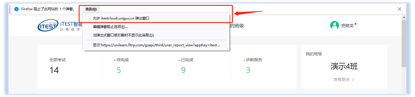 3)点击“去考试”时,如无法看到考试界面,请确认浏览器是否屏蔽了弹窗。