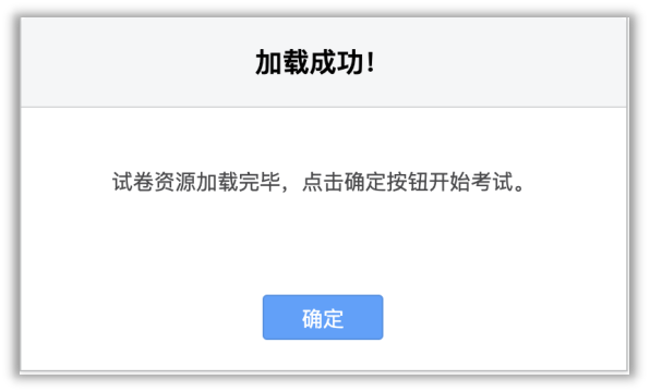 5)设备调试完成后,系统自动加载试题,加载成功后点击“确定”开始考试 ,考试倒计时正式开始。如果有考生显示“加载失败”,请即时检查网络环境是否正常,连接正常后,重新登录进入考试。如仍有问题请联系监考教师。