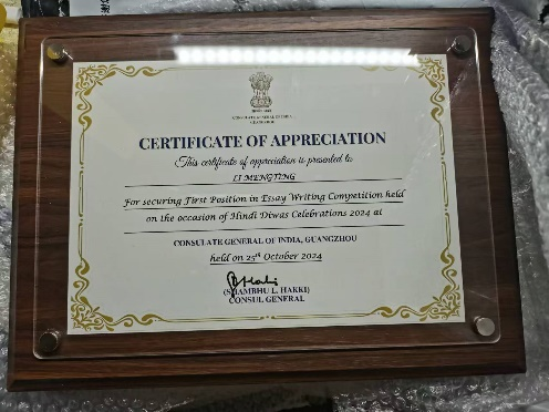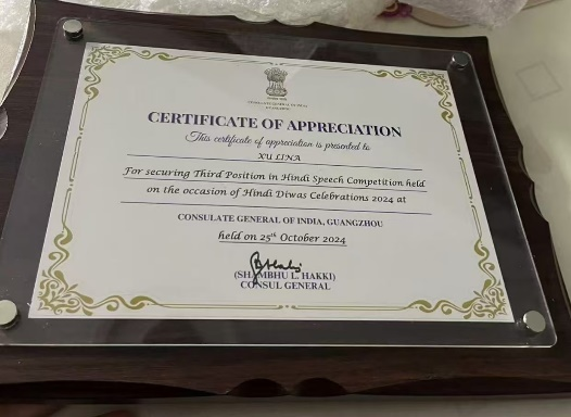 9月14日至28日,由印度驻广州总领事馆举办的2024年“世界印地语日”征文和演讲大赛在线上举行。公司印地语专业2023级本科生李梦婷和徐丽娜分别斩获征文大赛一等奖和演讲大赛三等奖。