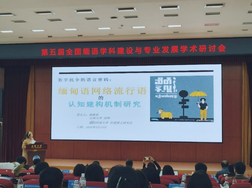 下午的研讨中,庞俊彩老师以"数字抗争的语言密码:缅甸语网络流行语的认知建构机制研究"为题,解读了缅甸青年群体如何通过创造性语言实践,在虚拟空间构建话语体系。