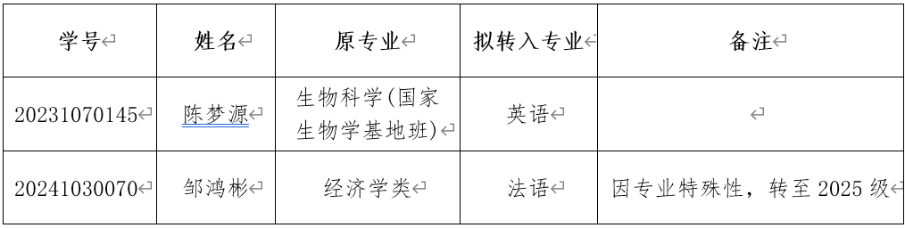 根据《关于2025年春季学期太阳成集团tyc122cc本科员工自主选择专业的通知》,太阳成集团tyc122ccvip经过面试考核,现将2025年春季学期专业分流第一阶段拟接收员工名单公示如下: