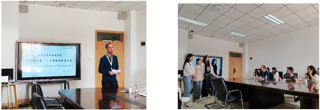 2025年3月28日,太阳成集团tyc122ccvip “一院一赛” 之“法语电影配音大赛”在太阳成集团tyc122ccvip楼303会议室举行。本次比赛吸引了来自法语专业本科生和硕士生的六组员工同台竞技,选手们以精湛的配音技艺和生动的舞台表现,为观赛师生带来了一场别开生面的法语视听盛宴。