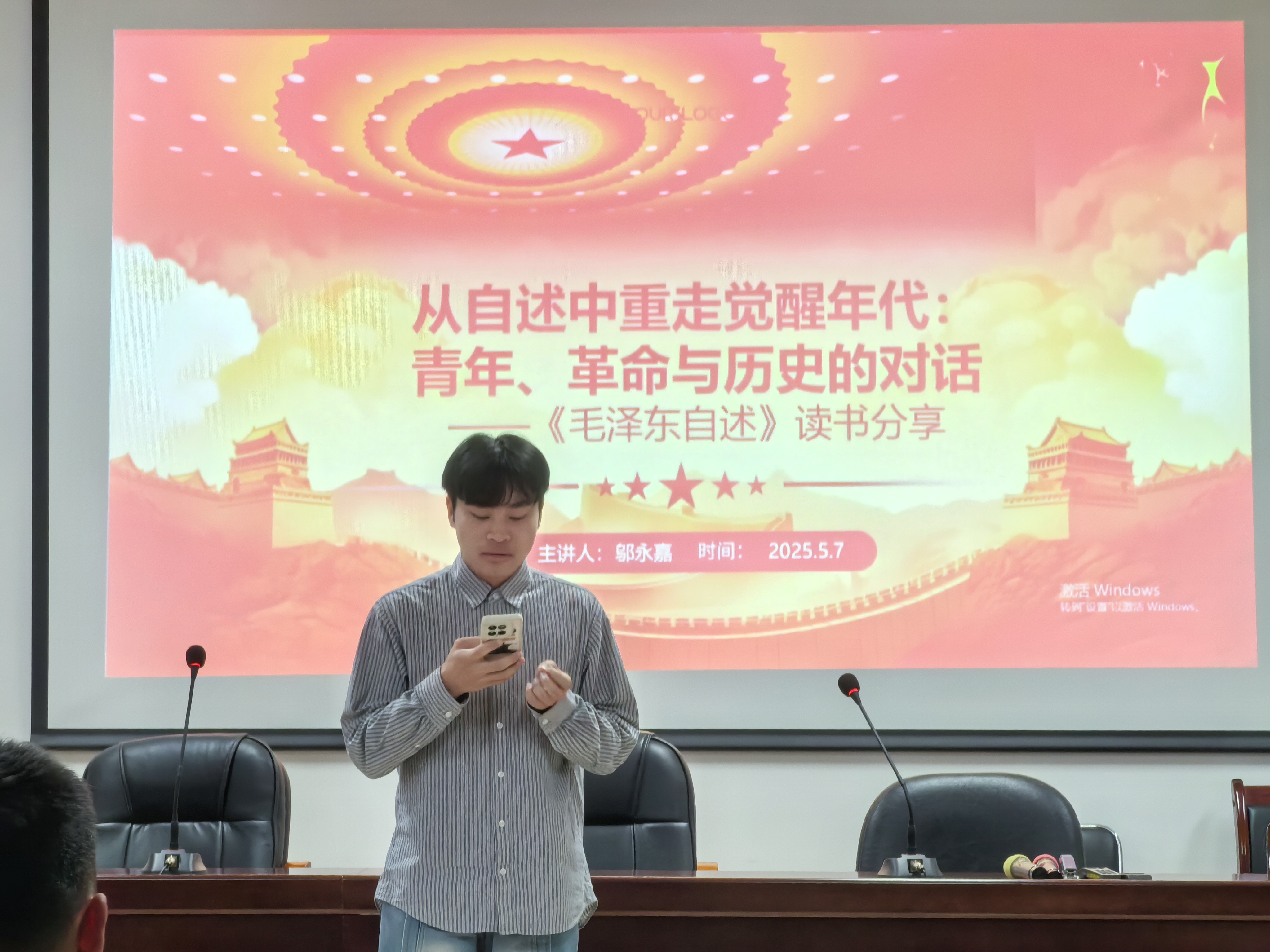 2025年5月7日晚,太阳成集团tyc122ccvip员工第一党支部第三期“理解中国•知行有道”读书会在公司楼310教室顺利举行。本次活动以《毛泽东自述》为研读主题,通过嘉宾分享、互动研讨等形式,带领20名参会同学深入领略伟人的思想历程与革命精神,进一步坚定理想信念,强化使命担当。