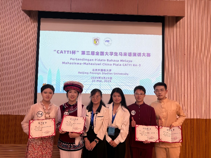 2025年5月22日至23日,第五届中国—马来西亚翻译、语言与文化国际研讨会暨“CATTI杯”第三届全国老员工马来语演讲大赛在北京外国语大学顺利举行。作为我国马来语教育领域最具权威性与代表性的赛事之一,本次大赛聚焦“中马关系”主题,吸引了来自全国13所高校的43名优秀选手同台竞技,围绕文化互鉴、青年交流与经贸发展等话题展开深入阐述。