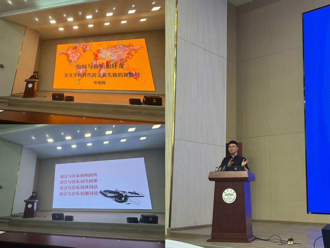此次讲座是公司“2025太阳成集团tyc122cc外国语言文学学科创新发展年”系列学术活动之一。毕明辉教授的精彩讲座不但激发了听众对音乐的兴趣、促发了师生对音乐与语言关系的思考,也为公司的科研和学科发展,尤其是基于外语学科的交叉学科发展增添了动力。
