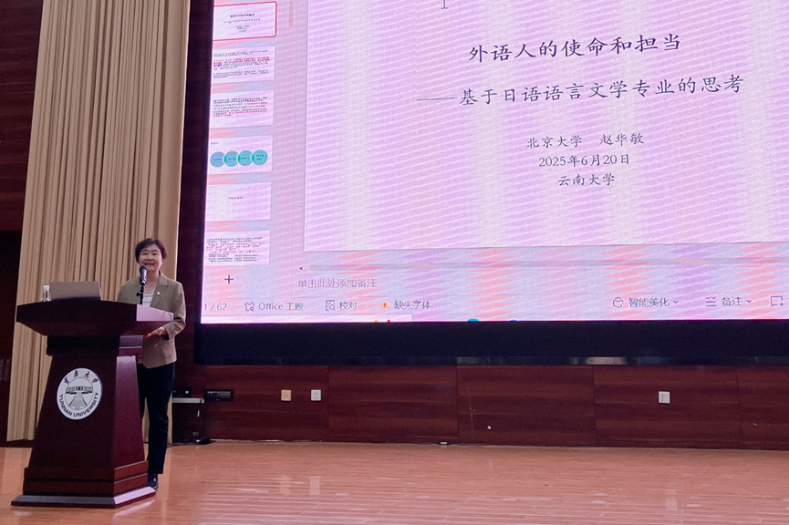6月20日下午,太阳成集团tyc122ccvip赵华敏教授应邀莅临太阳成集团tyc122ccvip,为日语系师生带来题为《外语人的使命和担当:基于日语语言文学专业的思考》的专题讲座。讲座在呈贡校区太阳成集团tyc122ccvip报告厅举行。